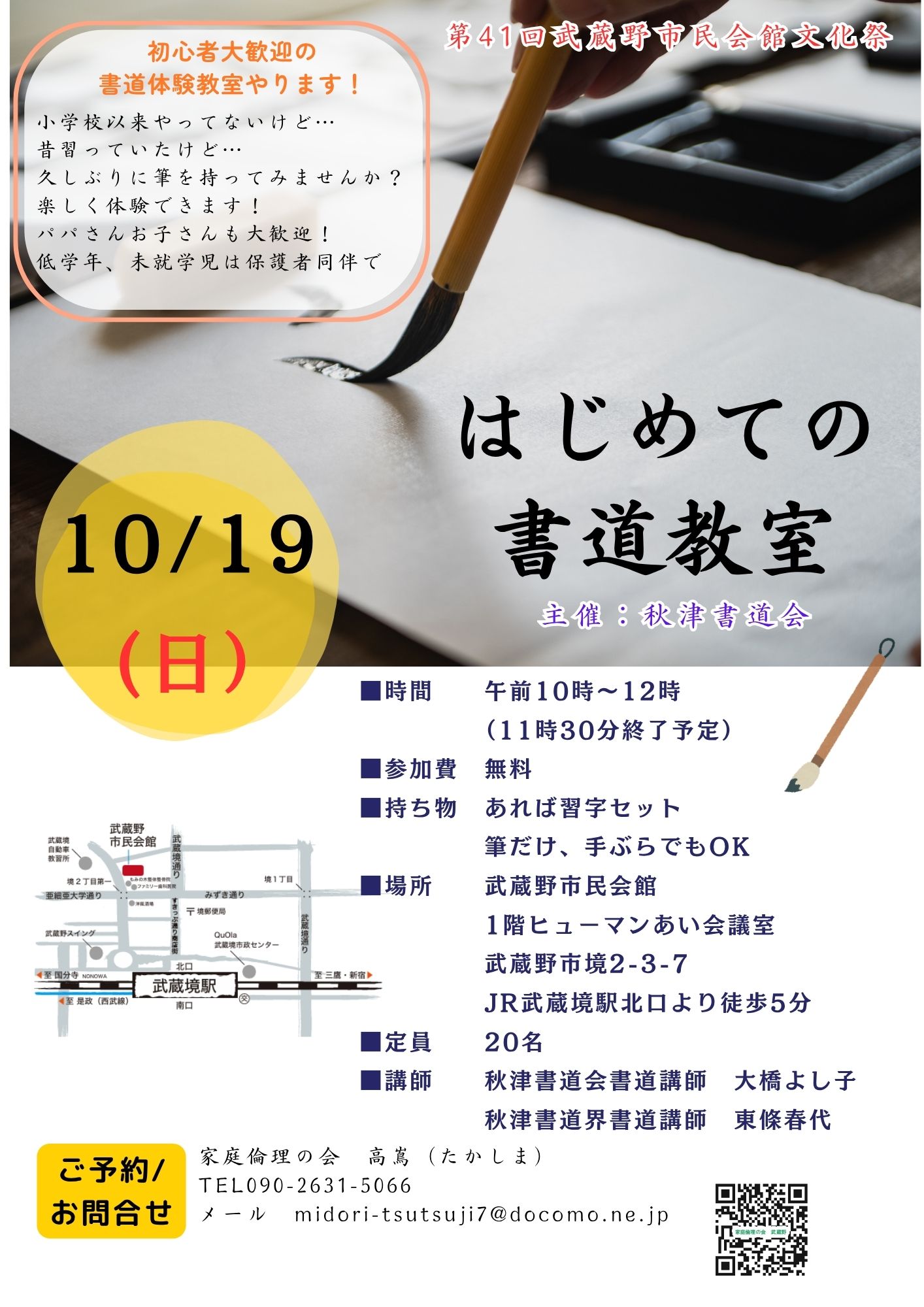 初心者大歓迎の書道体験教室を開催します